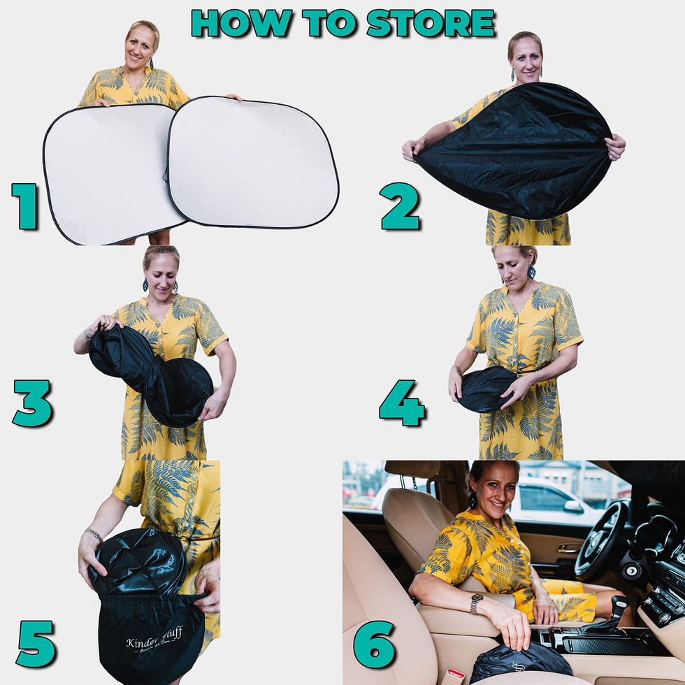 - Compact Design- Easy to install & remove without any suction cup, cups or adhesives or film leaving no residue on front windows glass. The foldable design & the bonus storage pouch makes it easy to fold & store in your autos, unlike car umbrella cover. Whether you have a ford, hyundai, kia, chevy, toyota, civic, tesla, volkswagen model, we got you covered!